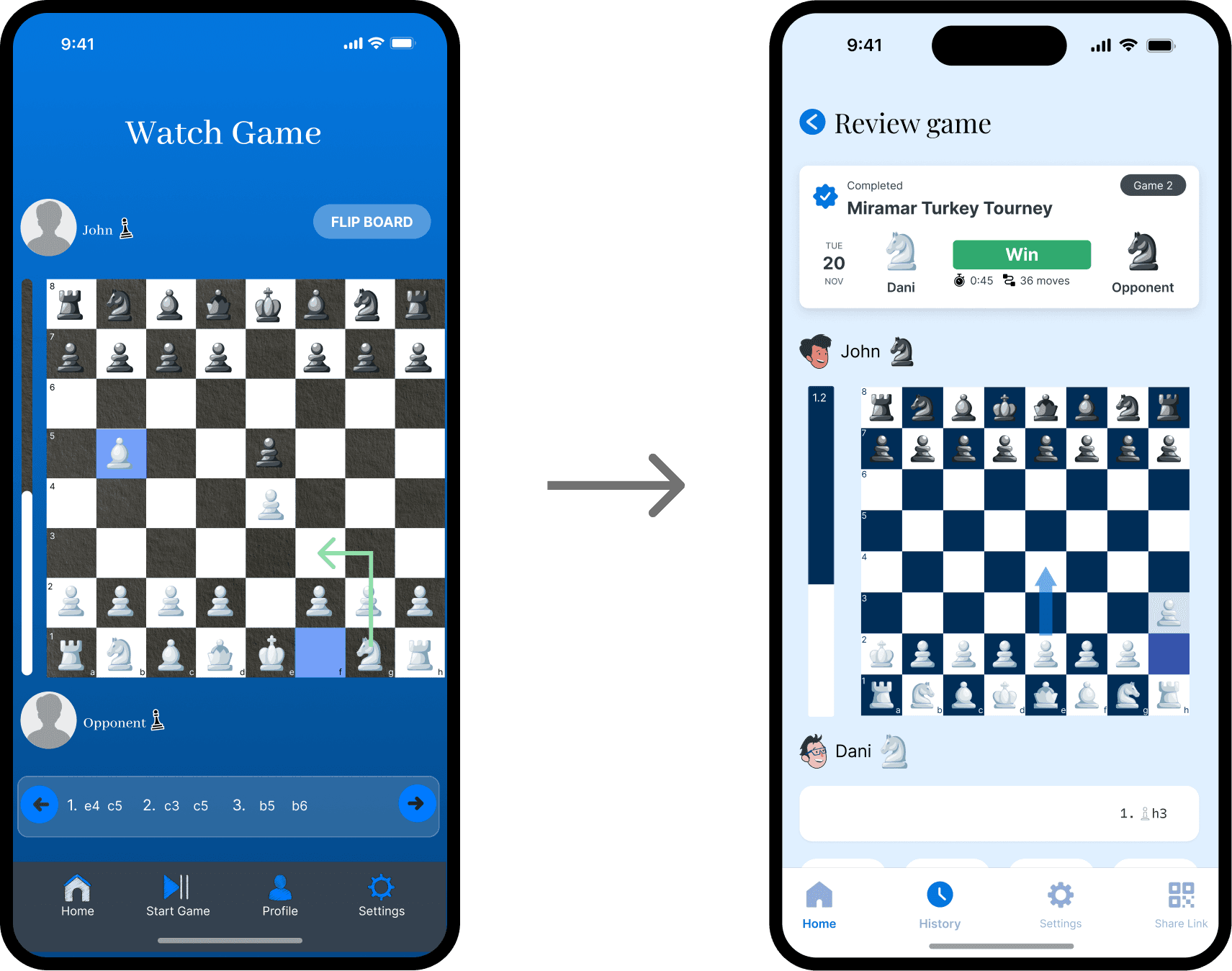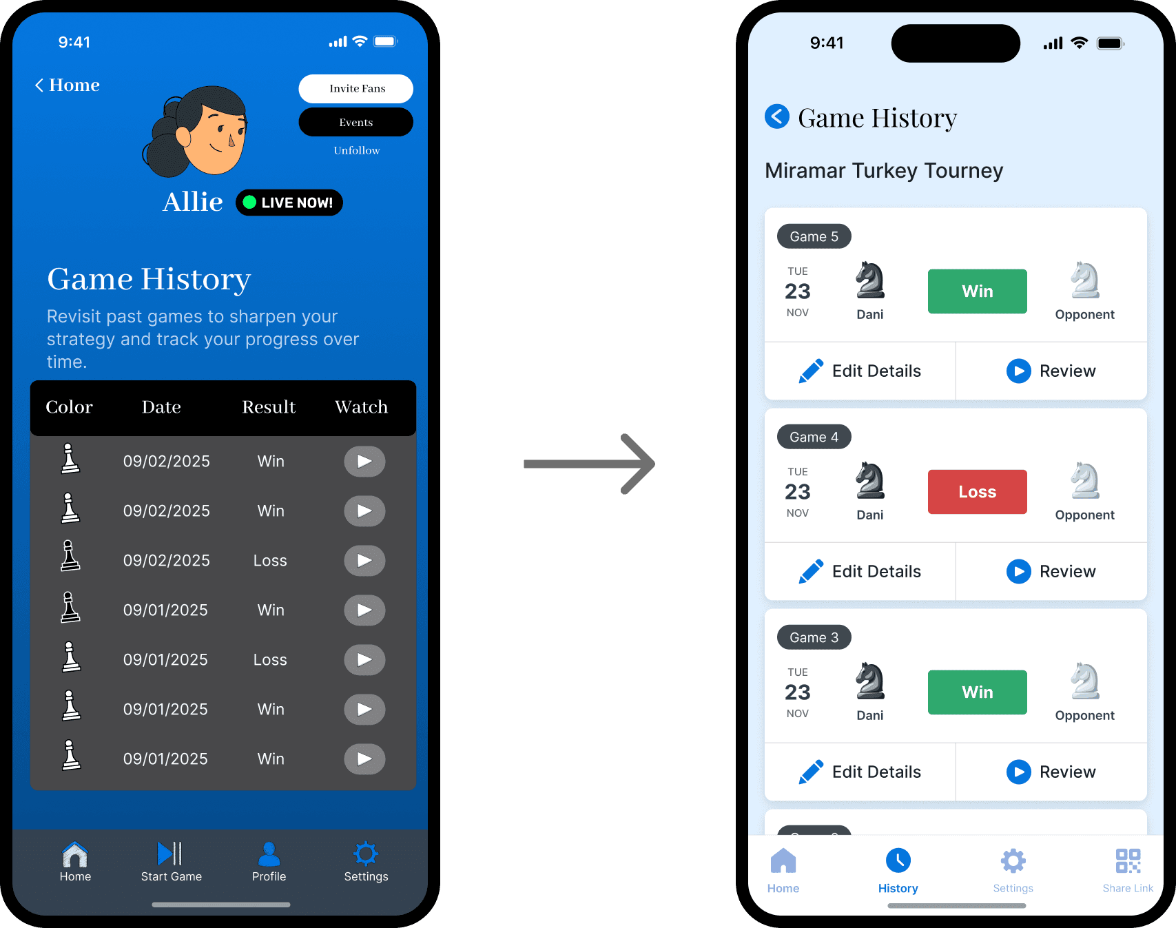 Live game layout, Home dashboard layout, Post-game review layout