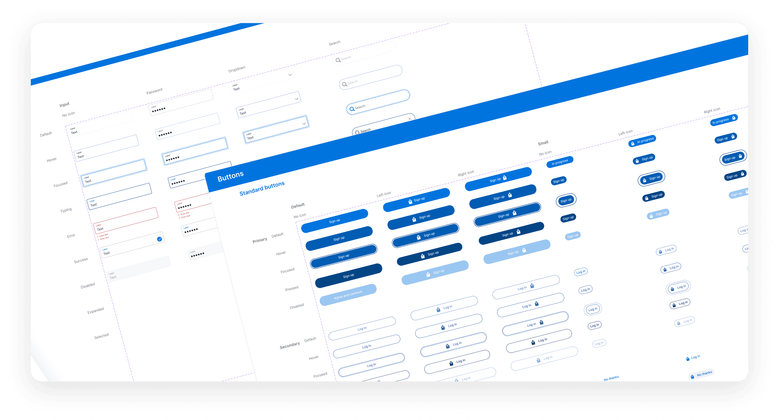 Components were built with explicit variant and state definitions (e.g. size, hierarchy, interaction, and status), leveraging Figma’s component properties to mirror how props are passed in code. Naming conventions for components, variants, and states were intentionally aligned with the internal code repository, creating a shared vocabulary between design and engineering.